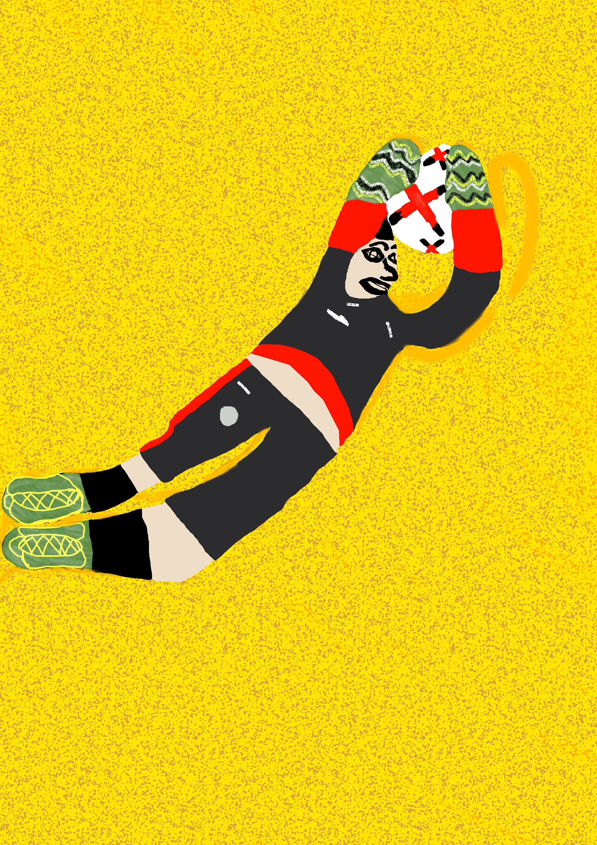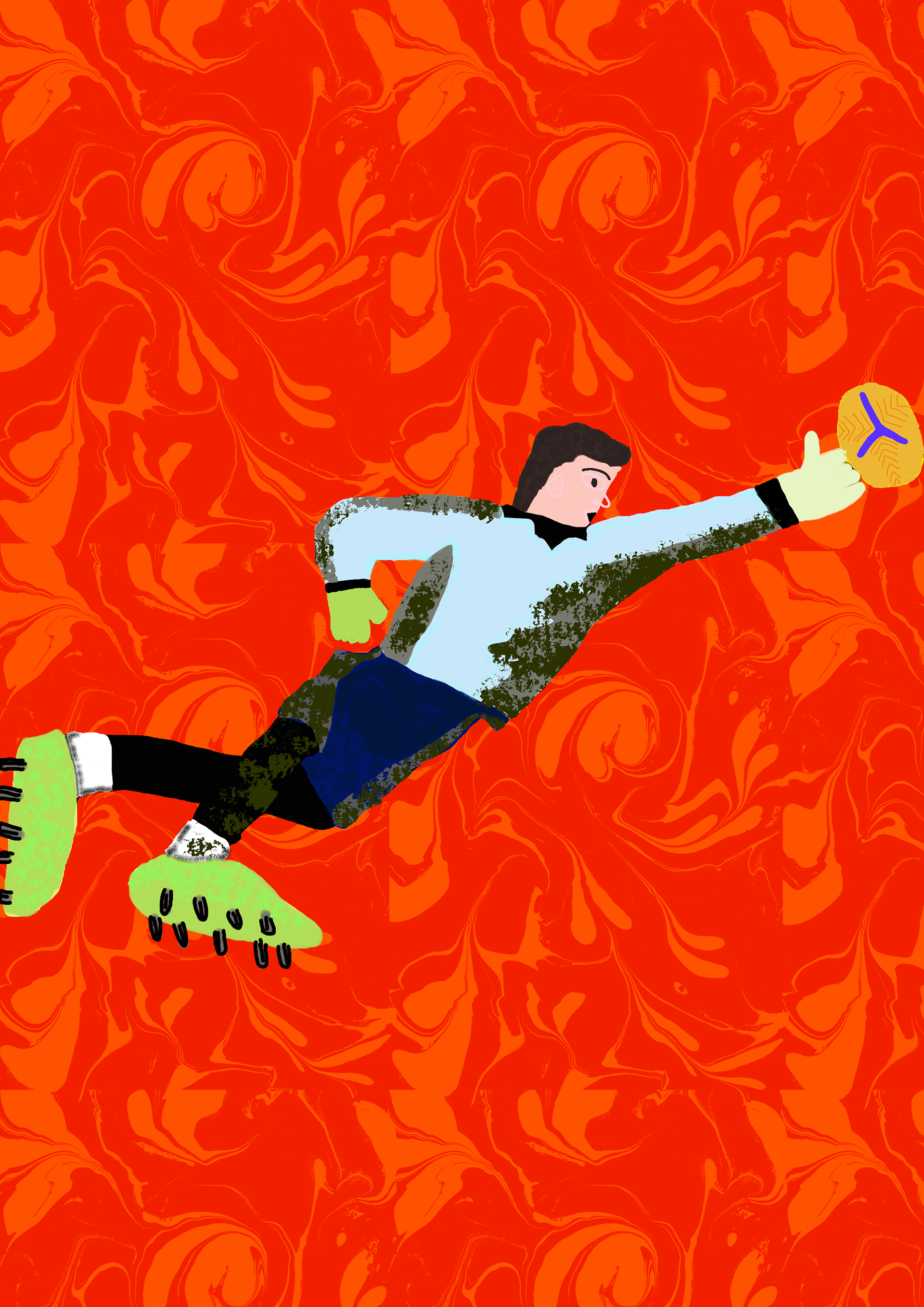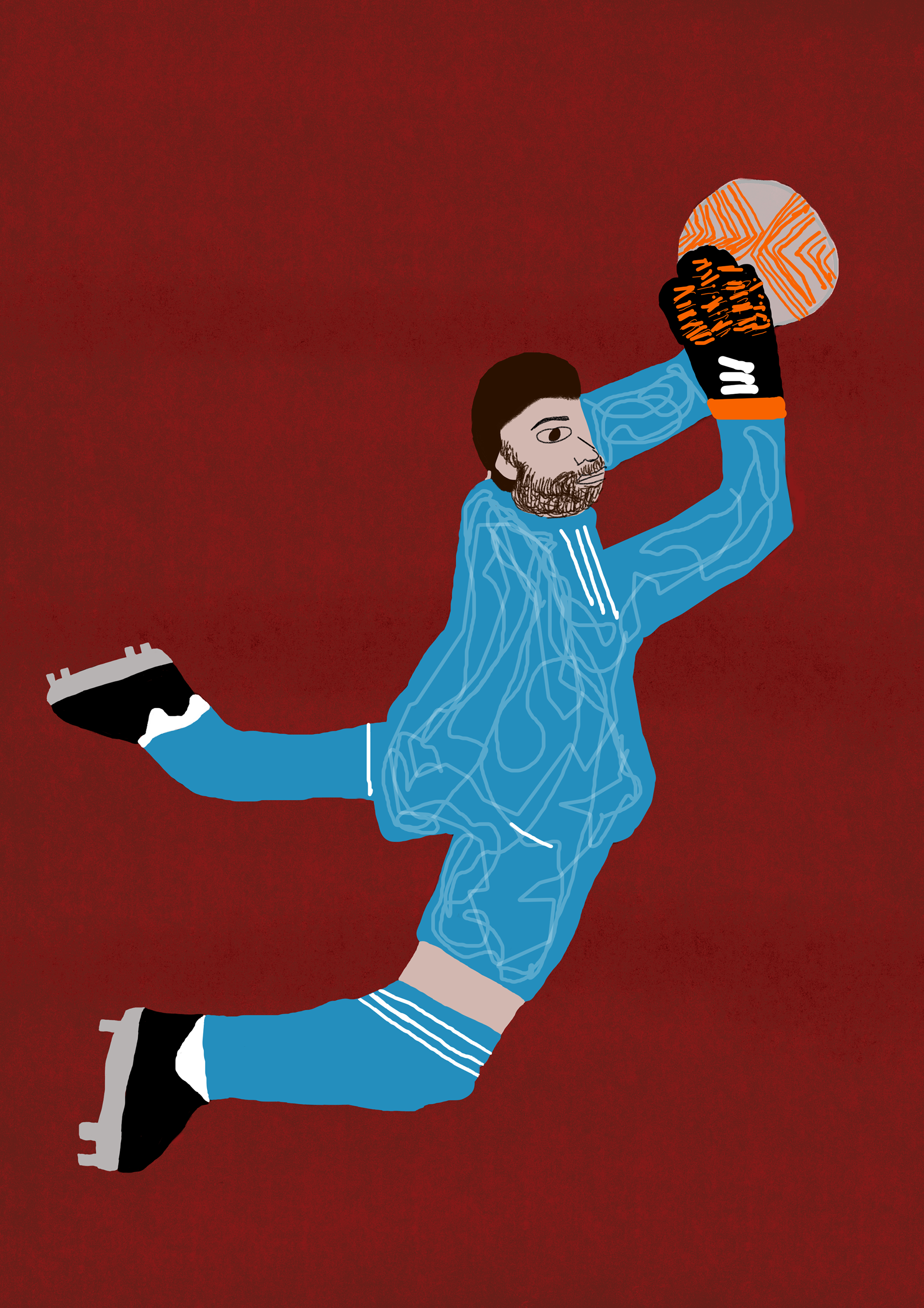 I have created a series of illustrations about goalkeepers. I started with black and white silhouettes. Later, I added colours and textures to the silhouettes.