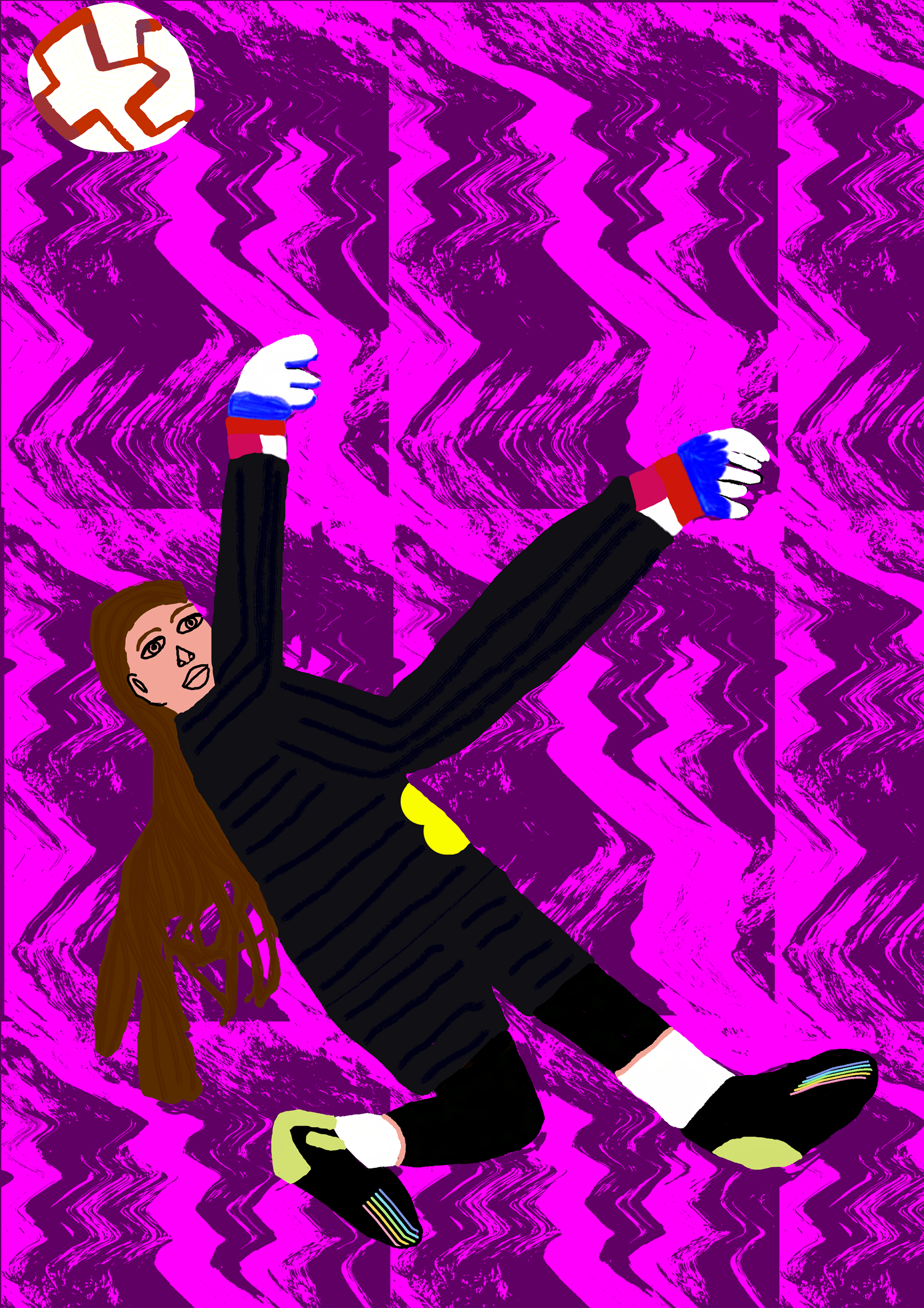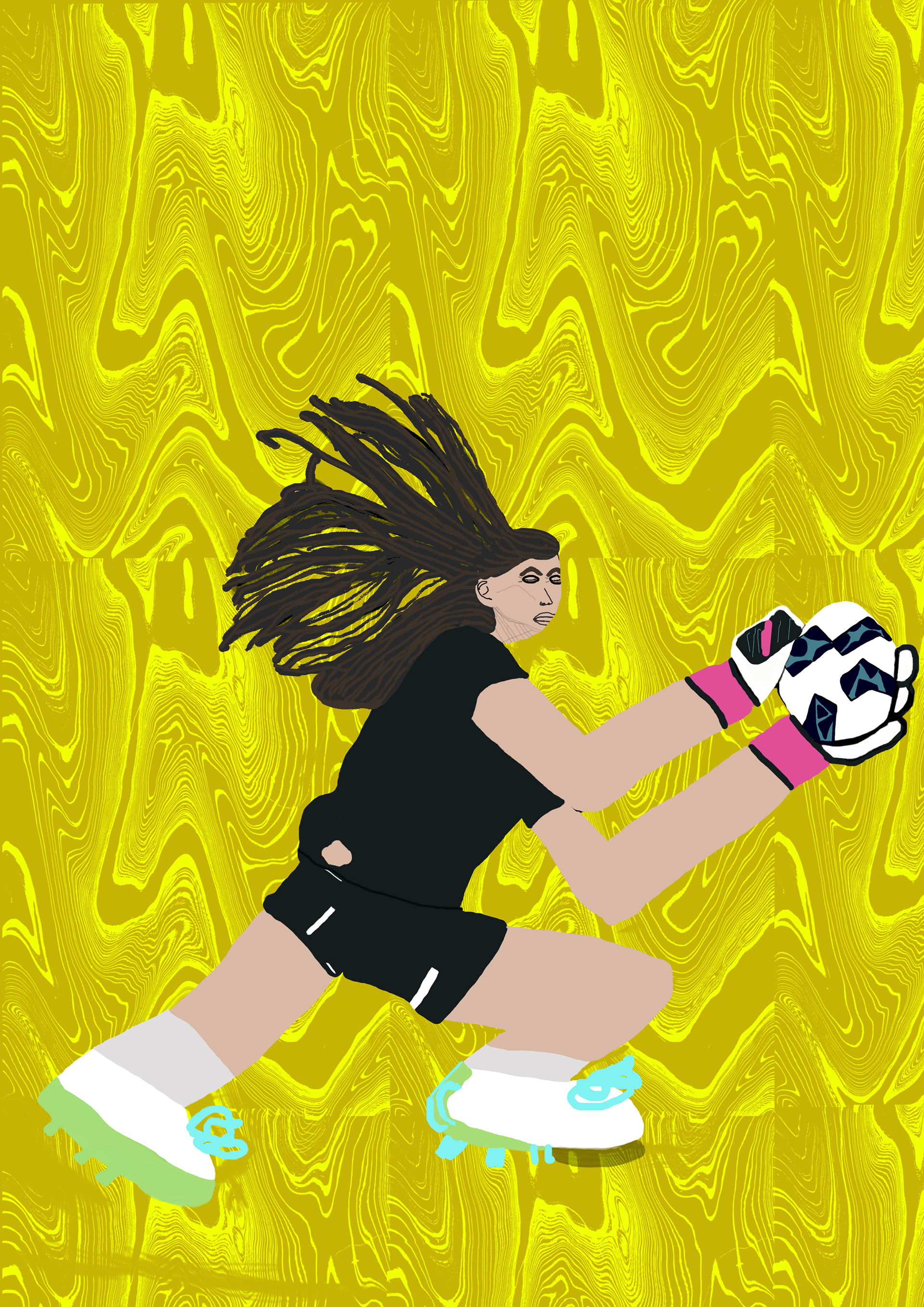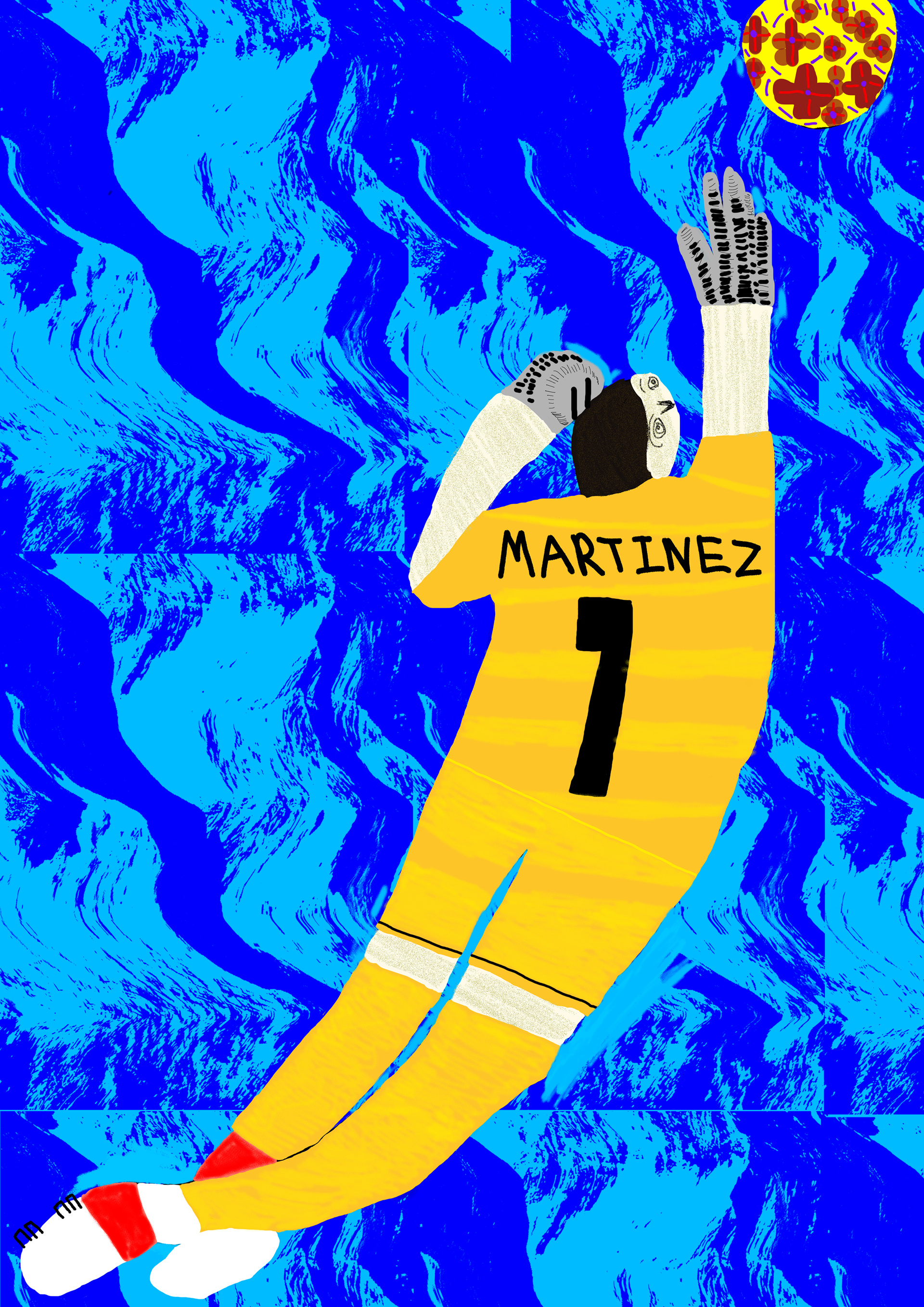 I have created a series of illustrations about goalkeepers. I started with black and white silhouettes. Later, I added colours and textures to the silhouettes.