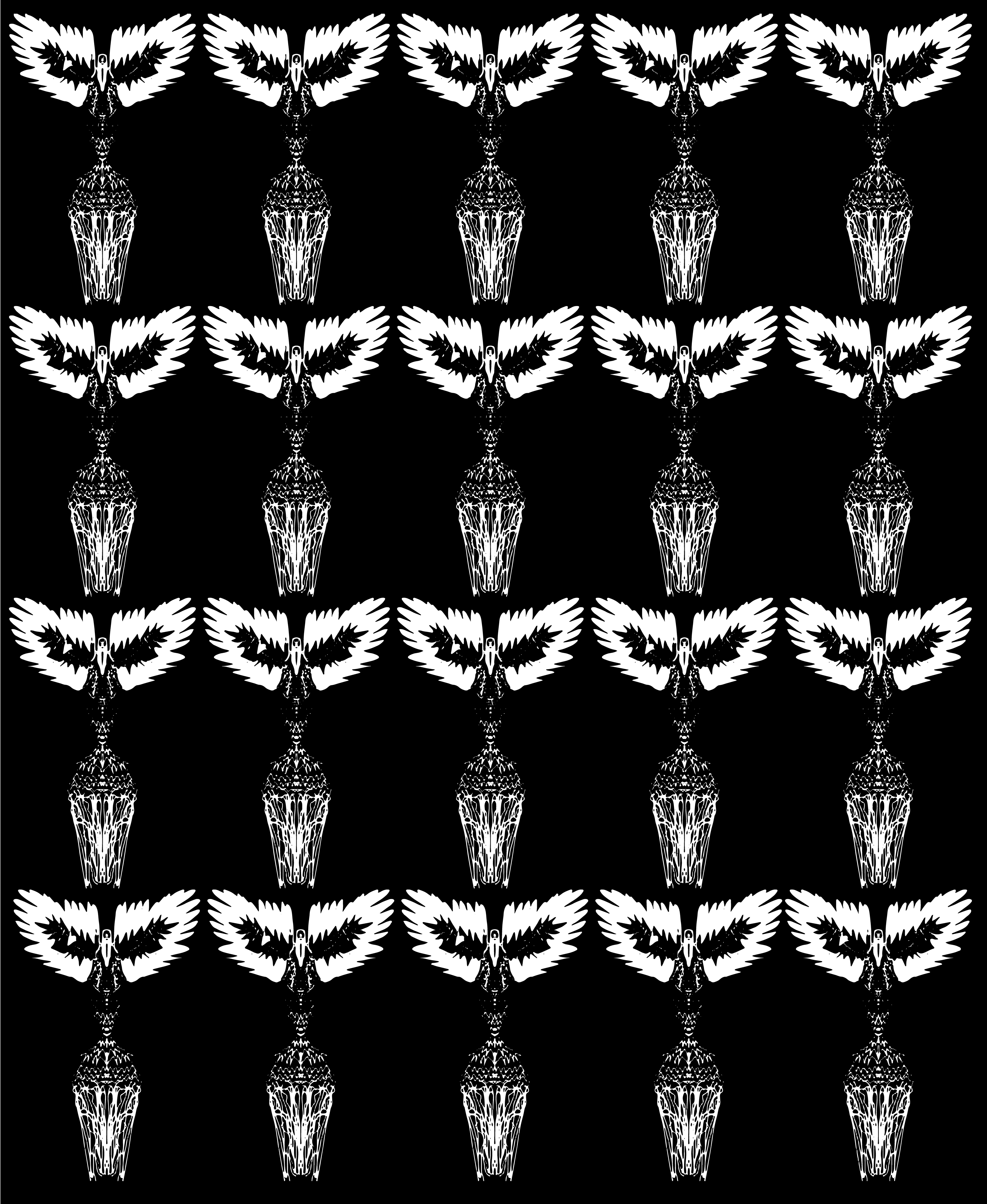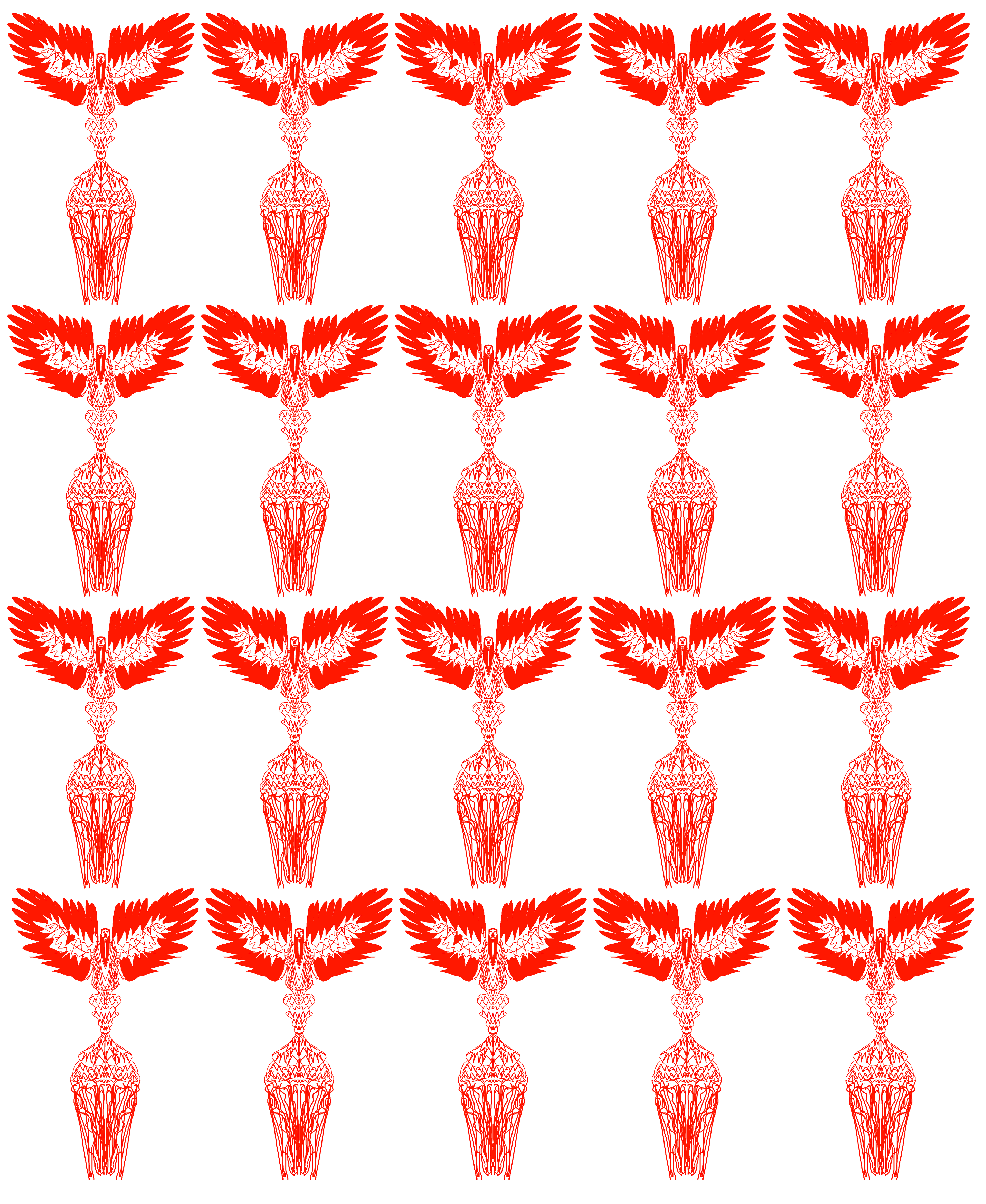 I used the phoenix drawing from the Rising Sun illustration (Inktober 2023) to create a series of patterns. I used the colours red, black and white.